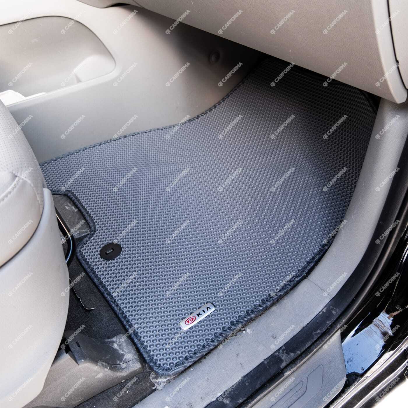 - Коврики идеально подходят для KIA Carnival III 9 мест и 11 мест и учитывают все особенности этого автомобиля