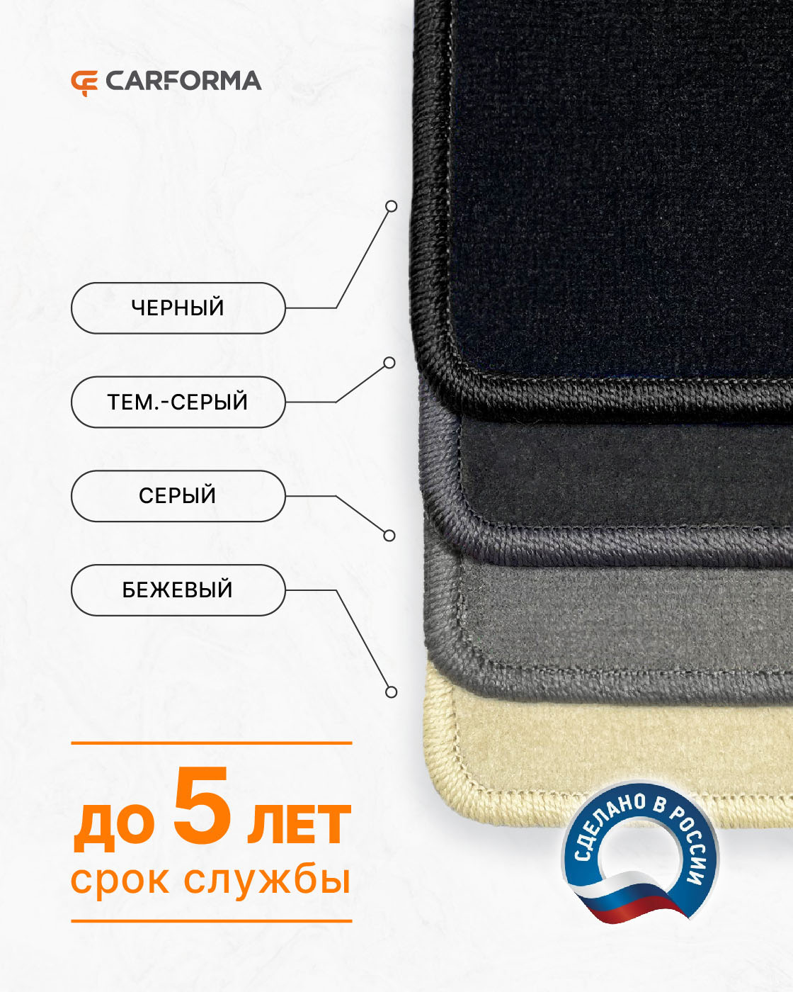 ПодробнееВорсовые коврики CARFORMA имеют толщину 5, 8 или 10 мм в зависимости от ценовой категории.